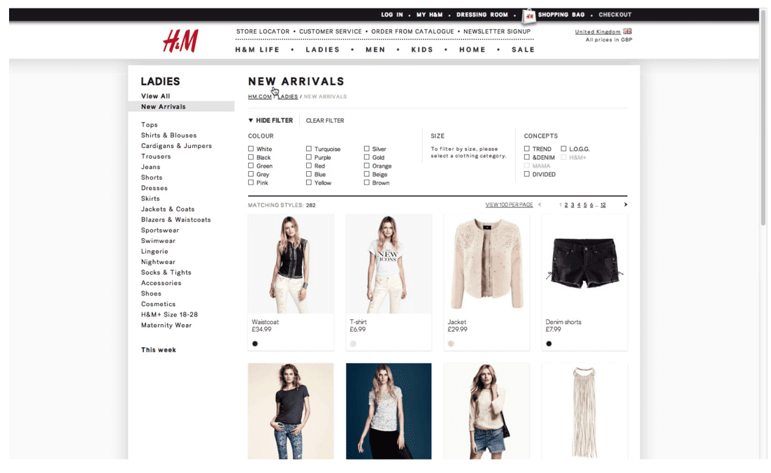 This is simply a category filter that allows users to see what new items have been added throughout the store since they last visited. Having this category or filter stops the users from having to visit multiple pages and search using their memory for new items or products. This is especially useful in seasonal industries like fashion, where seasonal items are released throughout the year.