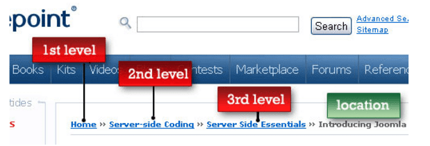 The type we are most concerned with for e-commerce stores is location-based bread crumbs. These breadcrumbs are used for navigation schemes that have multiple levels (like e-commerce categories):